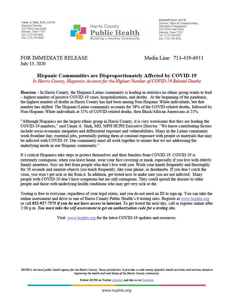Harris County Public Health Socialdistance On Twitter In Harriscounty Hispanic Latino Community Is Leading In Statistics No Ethnic Group Wants To Lead Highest Positive Covid19 Cases Hospitalizations Deaths Our Community Must